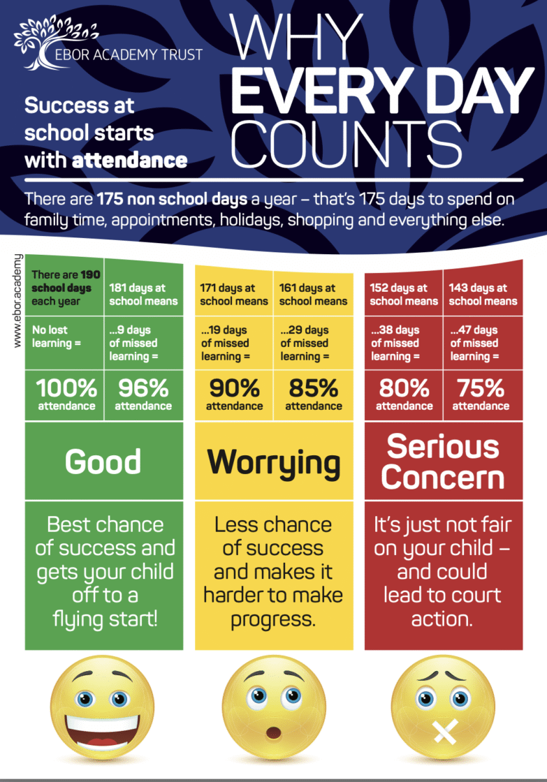 At Staynor Hall Community Primary Academy, we are committed to improving the attendance and punctuality of our children. It is only through maintaining a good level of attendance and punctuality that children can make the most of their opportunities at school. All children’s attendance is closely monitored and excellent attendance is rewarded through the giving of certificates and other class rewards. If we have concerns about a child’s attendance, we will contact parents to offer support on how this can be improved further.